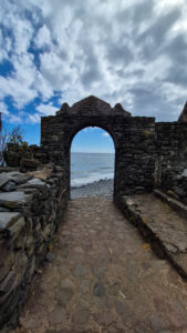 Bei den Ruinen gibt es einen Torbogen, der aussieht, als könnte man direkt ins Meer hindurchsteigen. Das tolle Fotomotiv wollen natürlich alle ausnutzen und man muss ganz schnell sein für einen perfekten Schnappschuss ohne Touristen im Hintergrund. Außerdem kann man dort dem wilden Meeresrauschen noch eine Weile lauschen. Direkt nebenan gibt es ein Restaurant mit zwei Pools. Das haben wir allerdings nur von außen gesehen. Irgendwie wirkte die Kombi „Restaurant mit Pool, aber ohne Hotel“ auf uns etwas merkwürdig. Ich hab so etwas zumindest noch nie sonst gesehen so mitten im Nirgendwo.