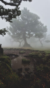 Nach unserem Besuch im Naturbad in Seixal sind wir auf gut Glück weiter gefahren zum Fanal Forest. Je höher wir gekommen sind, desto schlechter wurde das Wetter und ich habe mich wahrscheinlich noch nie so sehr über Nebel und Regen gefreut. Der Fanal Forest ist Teil des UNESCO-Weltnaturerbes Laurisilva-Wald und besteht aus uralten Lorbeerbäumen, die zum Teil schon mehrere Hundert Jahre alt sind. Richtig besonders wird es hier, wenn Nebel durch die Bäume zieht. Dann wirkt der Wald wie eine verwunschene Filmkulisse und man hat fast das Gefühl, gleich huscht ein Geist zwischen den knorrigen Ästen hindurch.